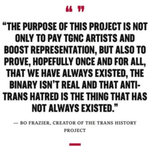 - Tell the history of Transgender and Gender Nonconforming people across all cultures who have existed since the beginning of time